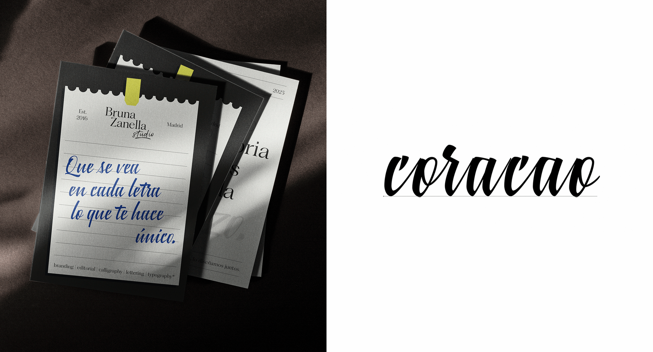 Pensada para marcas que buscan diferenciarse sin perder solidez. Una tipografía que no adorna, sino que define. Porque en Bruna Zanella Studio diseñamos con sensibilidad, pero también con método. Y Espressa así lo representa.